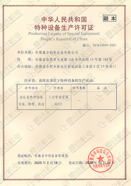 目前我公司具有建筑機電安裝工程專業承包一級資質、總承包二級、GC2壓力管道設計、施工資質。現有高級工程師5名、高級技師55名、工程師22名、助工25名、技術員22名、各類專業技師50多名,強大的技術力量及精良的施工隊伍,為客戶提供全方位服務。 公司本著“一切為了用戶”的經營理念,“以品質求生存、以誠信贏市場、以管理促發展”為要求,努力為廣大客戶提供專業,優質、高效的服務。